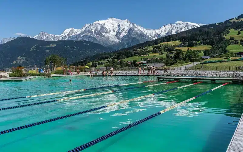 The Combloux natural swimming pool is located a stone’s throw from the village centre, in a landscape with a 360° view of the mountain ranges.