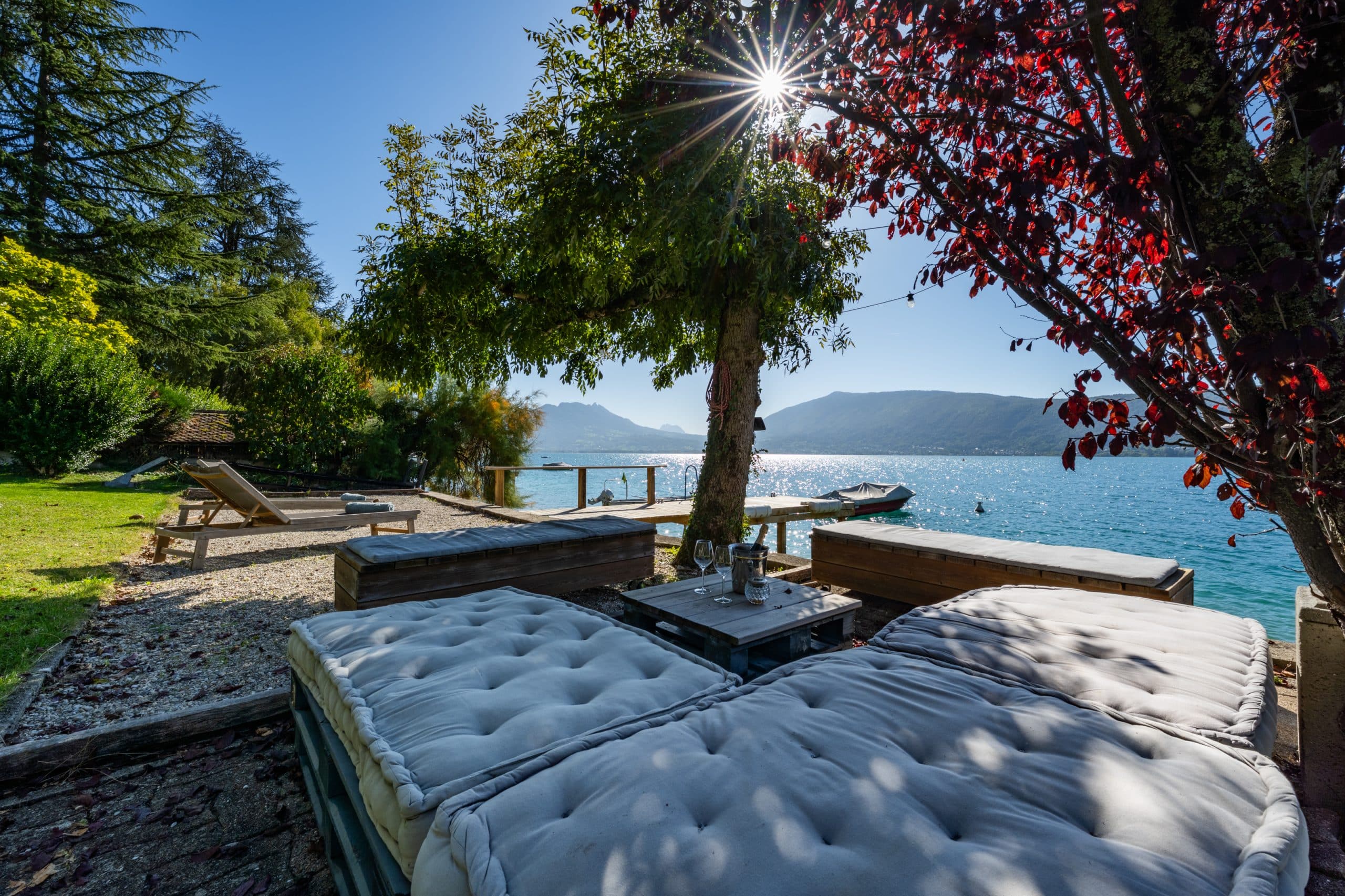 Experience magical moments right on the water at Villa Belle Rive. Located in the sought-after commune of Veyrier-du-Lac, on the shores of Lake Annecy, Villa Belle Rive is as beautiful as the breathtaking views it offers thanks to its direct access to the lake. Enjoy water sports and swimming at any time of day in the translucent blue waters. With 4 bedrooms and 3 bathrooms, the Villa can accommodate up to 8 guests for an exceptional lakeside holiday. Admire the breathtaking view from its terrace overlooking the lake and let yourself be enchanted by the shades of blue and hues of the sunset.the refined, detailed decoration in each room will add the finishing touch to this enchanting setting.