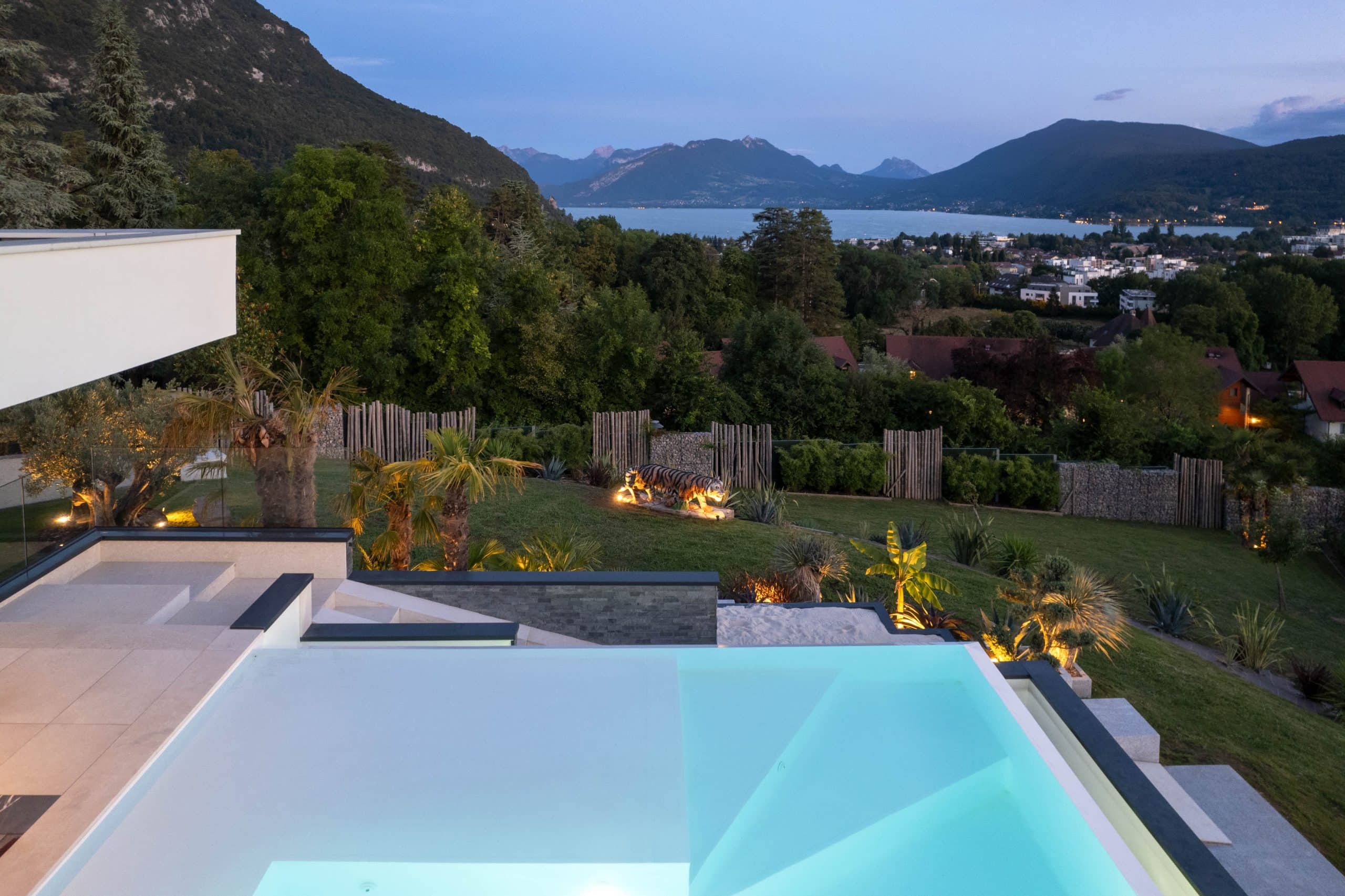 This contemporary villa, with its sleek design and unique décor, is a haven of peace. Perched high up in the mountains, it offers you a purely relaxing stay, with breathtaking views over Annecy, its lake and the surrounding area that will leave you speechless. With 6 bedrooms and 6 bathrooms, Villa The Inspiration can easily accommodate up to 12 guests. Relax in the private Jacuzzi or outdoor swimming pool while taking in the beauty of Lake Annecy. You can also enjoy a cinematic experience in the cinema for a great family night out.